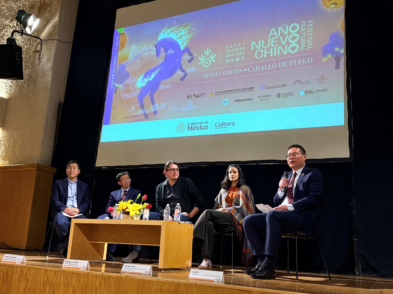 2026年2月4日(周三),2026年第五届新春文化节·火马(Festival Cultu‐ral del Año Nuevo Chino20265ºEdición:Caballo de Fuego)新闻发布会在墨西哥城国家艺术中心(CENART)举行。中国驻墨西哥大使馆参赞杨川颖、墨西哥中国文化中心主任李林、全墨西哥华人华侨总会会长耶天慧、墨方新春文化节总制作人Yaride Rizk、CENART办公室主任Rodrigo Callado等出席,并向媒体介绍本届活动主题、亮点内容与保障安排等。