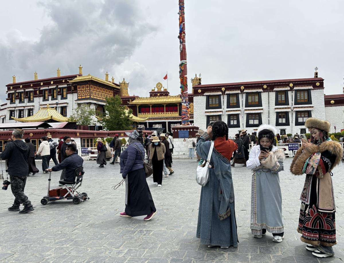 Turistas visitan la antigua calle Barkhor en Lhasa,capital de la región autónoma de Xizang.[Foto:Palden Nyima/China Daily]