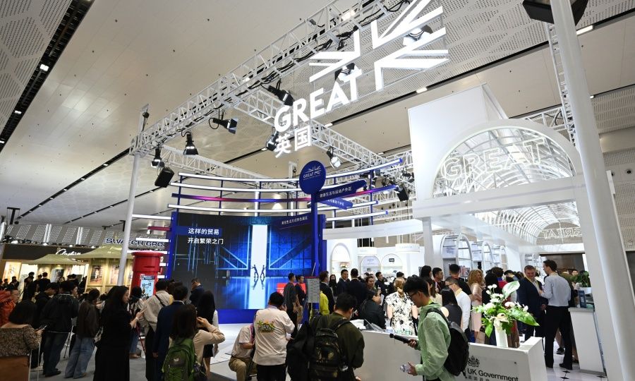 Visitantes exploran el Pabellón del Reino Unido en la Exposición Internacional de Productos de Consumo de China que se celebra en Haikou,provincia de Hainan,13de abril del2025.(Foto:Chen Tao/GT)