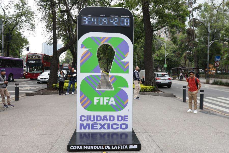 Imagen del11de junio de2025del reloj con la cuenta regresiva para el Mundial de Estados Unidos,México y Canadá2026instalado en la avenida Paseo de la Reforma,en la Ciudad de México,capital de México.(Xinhua/Francisco Cañedo)