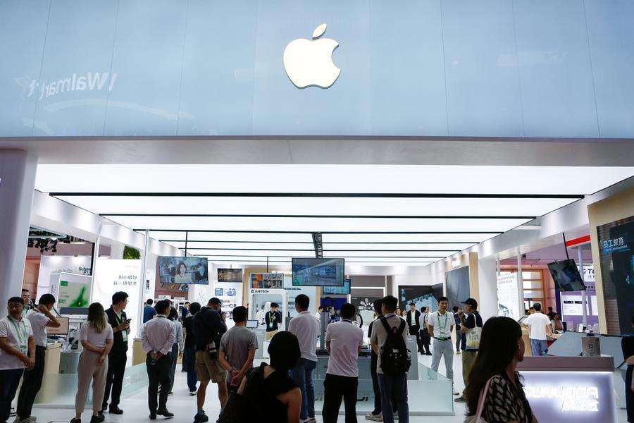 Imagen del17de julio de2025del estand de Apple durante la III Exposición Internacional de la Cadena de Suministro de China(CISCE,por sus siglas en inglés),en Beijing,capital de China.(Xinhua/Ding Hongfa)