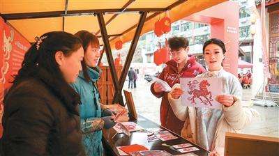 游客在老街上体验非遗剪纸。