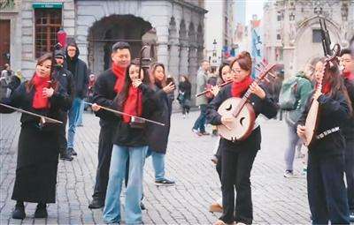 无锡民族乐团在比利时布鲁塞尔大广场上的快闪活动。