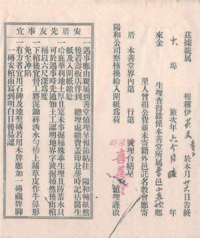 中国华侨历史博物馆收藏的这件美国阳和会馆黄粱都喜善堂的入闸票,正是这段历史的鲜活见证。这是善堂发放的安葬凭证,会员缴费后,方可安葬在会馆的坟场内。等待时机成熟后,可由善堂组织运送遗骸回乡,让逝者魂归故里。票面左侧写的是安葬流程,右侧则详细标注逝者年龄、卒年、籍贯,落款为经办善堂。其中的一笔一画,都是侨胞对先人的敬重,更是侨社守望相助的承诺。