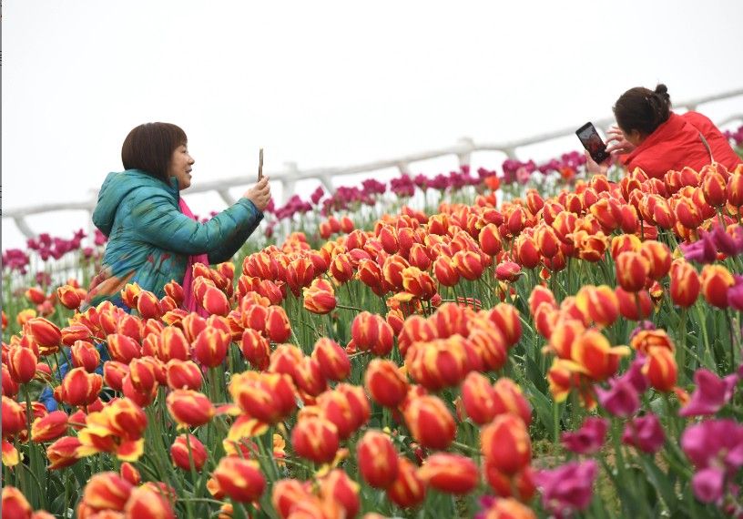 3月4日,重庆市大渡口区金鳌村云上田园景区内,各色郁金香扮靓美丽乡村,吸引市民“村游”。中新社