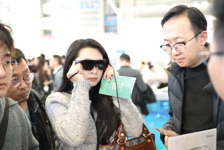 2024年12月27日,2024深圳国际眼镜业博览会在深圳会展中心(福田)举行。图为参观者体验AR智能眼镜。中新社