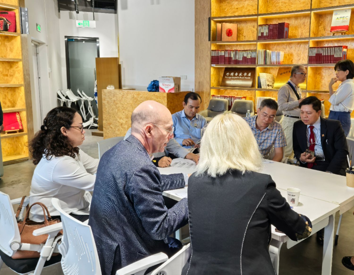2025年4月,海内外人士在湖南洋湖国际社区的外国专家书屋中交流。中新社
