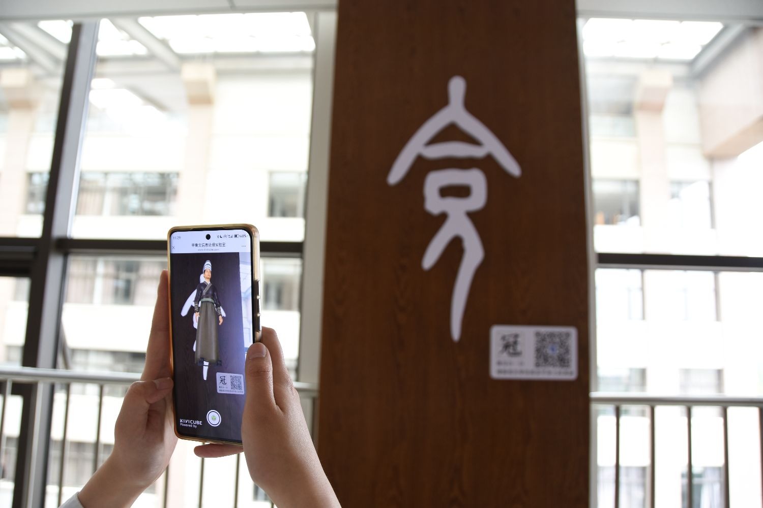 4月21日,在河南安阳师范学院甲骨文信息处理教育部重点实验室,工作人员演示基于增强现实技术的甲骨字展示与活化小程序。中新社