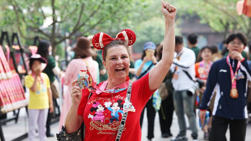 海外游客参加“2025奇跑迪士尼·乐享晨光”。中新社