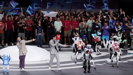 中新社报道,当天,超百支战队闪耀“冰丝带”,各式机甲竞放风采,机器人街舞、戏曲、走秀轮番登场,机器人与演员联袂献艺,现场掌声潮动。