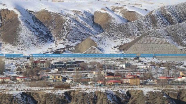 乌尉高速公路从乌鲁木齐县萨尔达坂乡旁经过。中新社