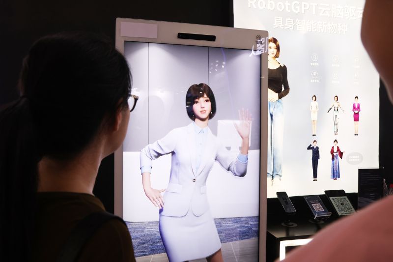 2024年,在上海举行的2024世界人工智能大会上,智能数字人与观众互动。中新社