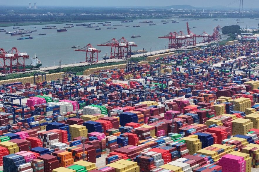 2025年7月14日,航拍长江沿线南京龙潭港进出口集装箱码头。中新社资料图