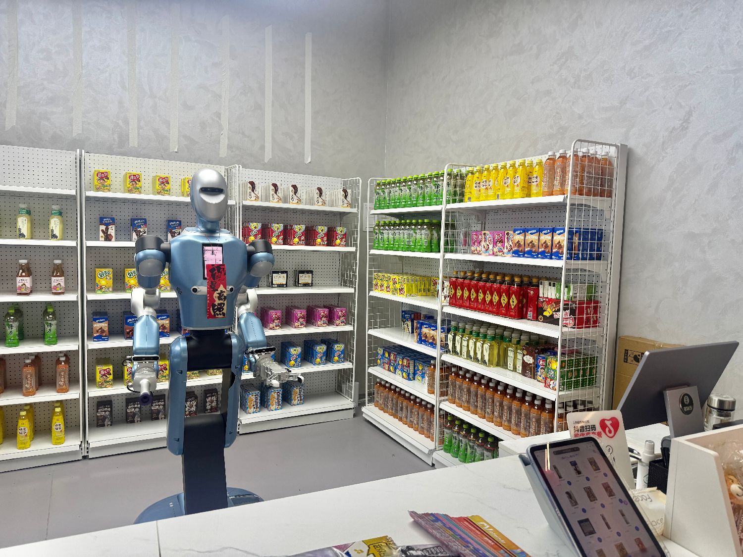 27日,武汉光谷人形机器人7S店的一台机器人正在“经营”小卖部。中新社