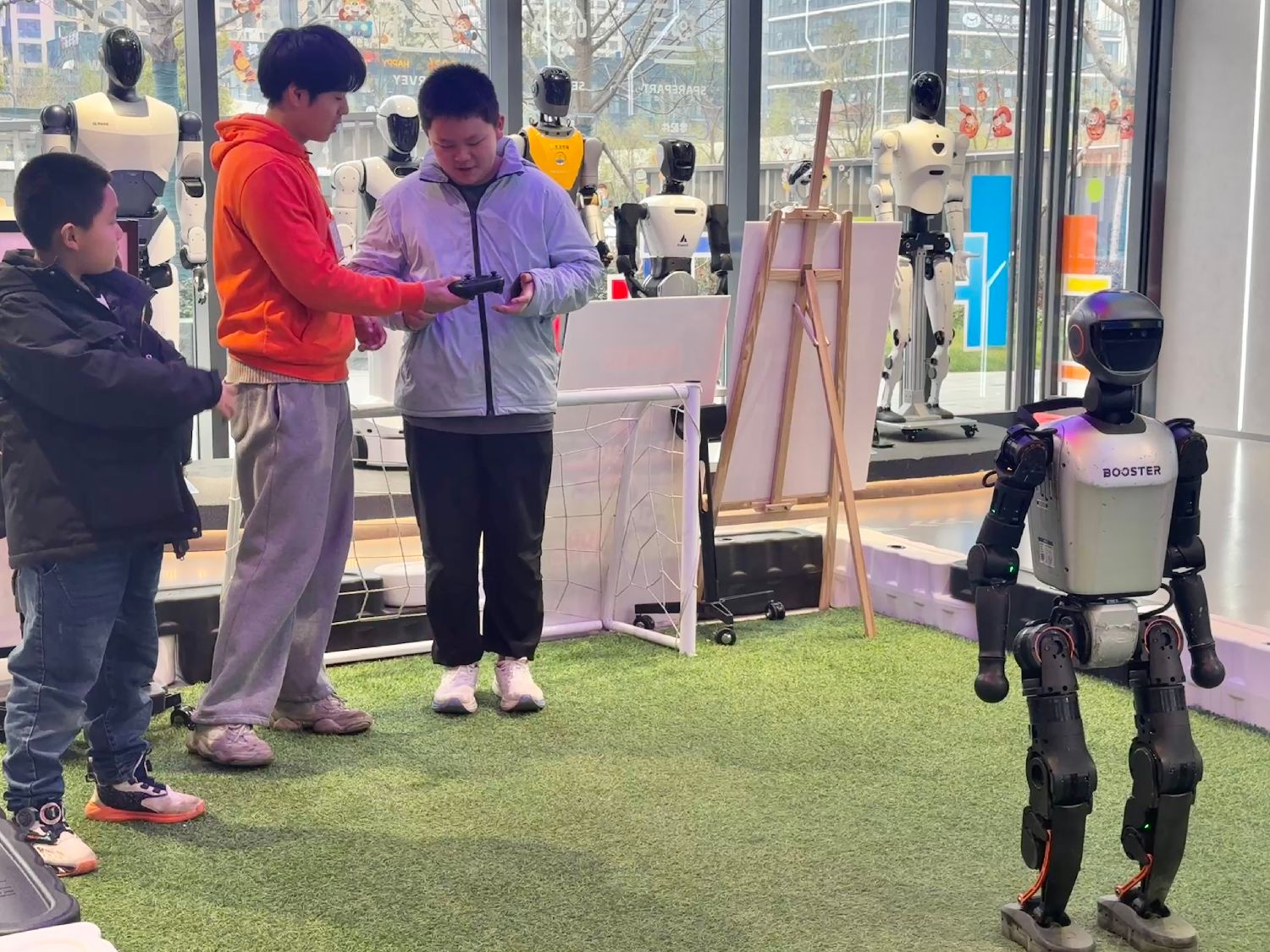 武汉光谷人形机器人7S店也成了市民游客的“打卡地”,日均接待顾客约5000人次。店内最热门的要数AI下棋、机器人踢足球和体感竞技等互动项目,很多外地家长带着孩子来体验,每个项目排队超过半小时。