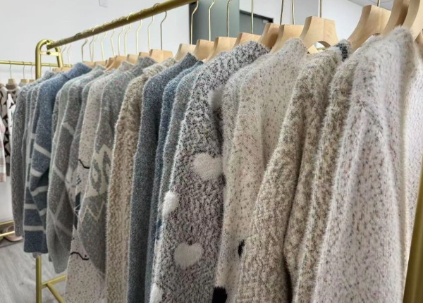 3月,浙江嘉兴秀洲洪合镇某毛衫企业展示的产品。中新社