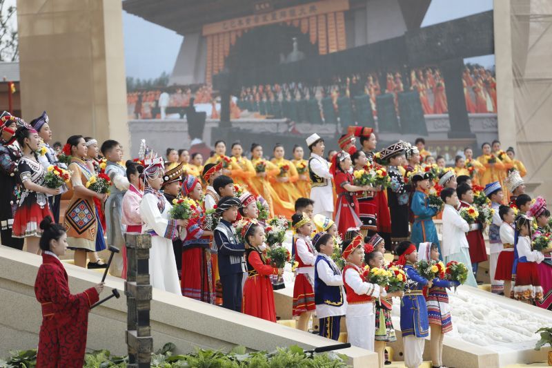去年3月31日,乙巳年黄帝故里拜祖大典在河南新郑举行。图为合唱团吟唱《黄帝颂》。中新社
