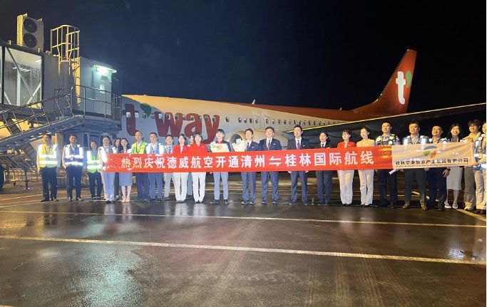 中新社报道,该航班落地桂林机场后,桂林市文旅机构、桂林机场组织了首航仪式。据悉,此次新航线由德威航空采用波音B737-800机型执飞,航班号为TW9613/9614,计划每周飞行两班,周三、周六从清州飞往桂林,周四、周日从桂林返回清州。