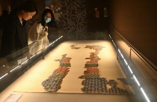 8日,在位于甘肃省兰州市的甘肃简牍博物馆,观众参观“锦绣华裳”巴州博物馆藏古代服饰精品展。中新社