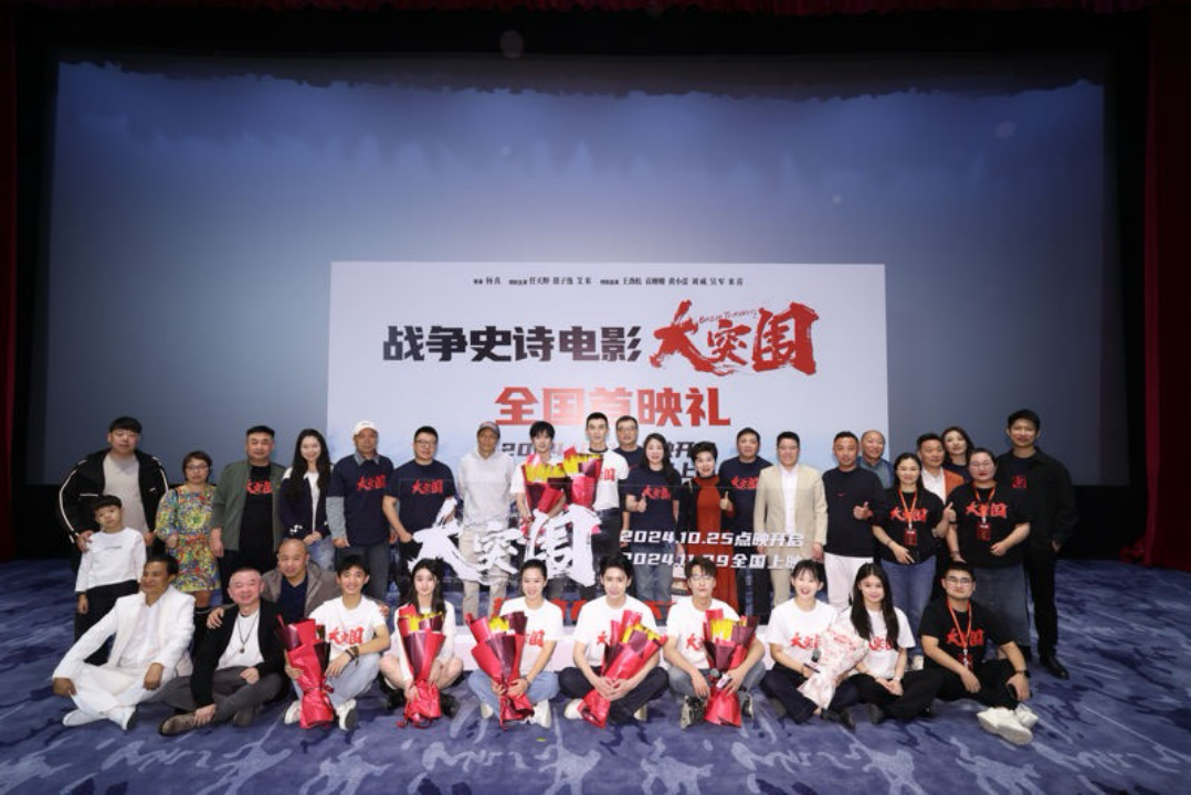 新京报讯(记者周慧晓婉)10月19日,电影《大突围》在北京首映。出品人、总制片人陶姝君,编剧杨子萱,导演杨真,领衔主演任天野、敖子逸,摄影指导赵小丁、陈庥宏,美术指导吴黎中等主创到场,与观众分享影片背后的故事。影片将于10月25日开启点映,11月29日全国上映。