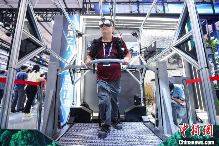 在数博会展馆中,参观者在体验“AI+元宇宙空间”设备。中新网