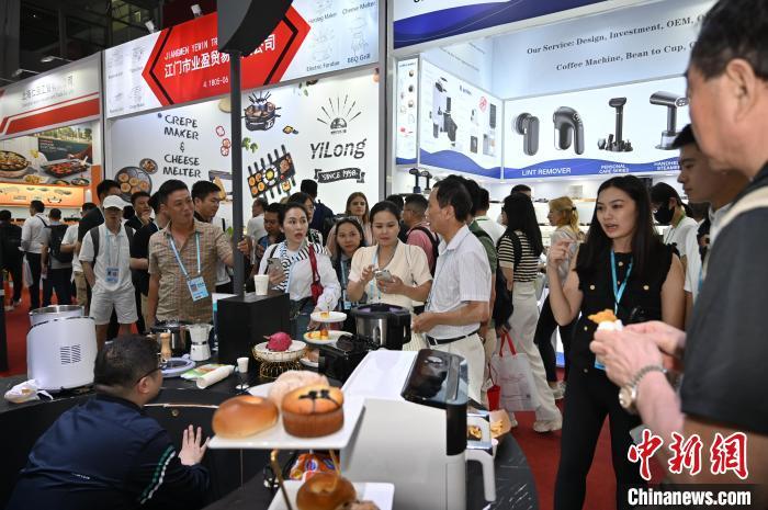 在第135届广交会家电展区,烹饪机器人现场演示吸引采购商。中新社