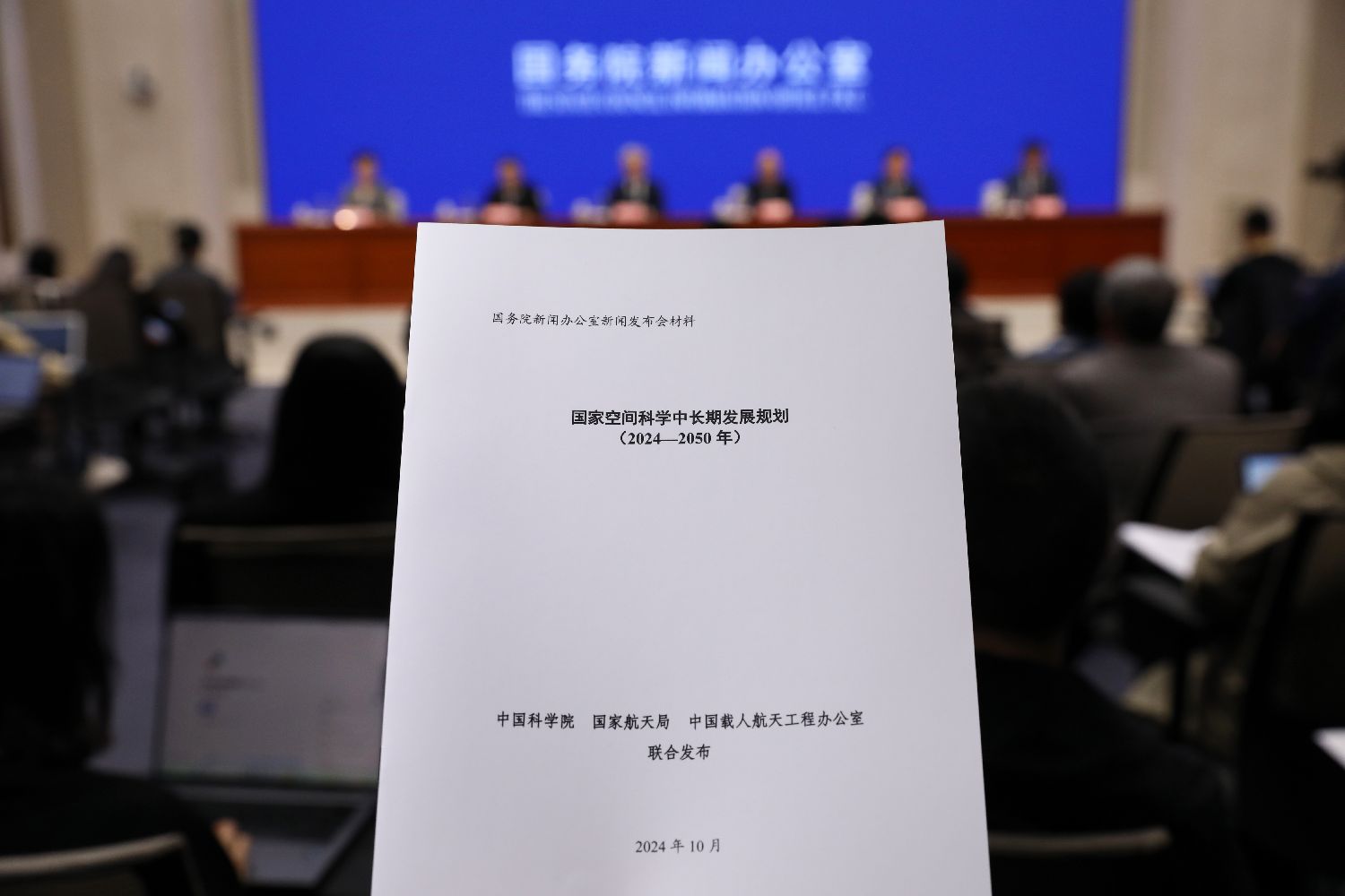 图为中国科学院、国家航天局、中国载人航天工程办公室联合发布《国家空间科学中长期发展规划(2024—2050年)》。中新社