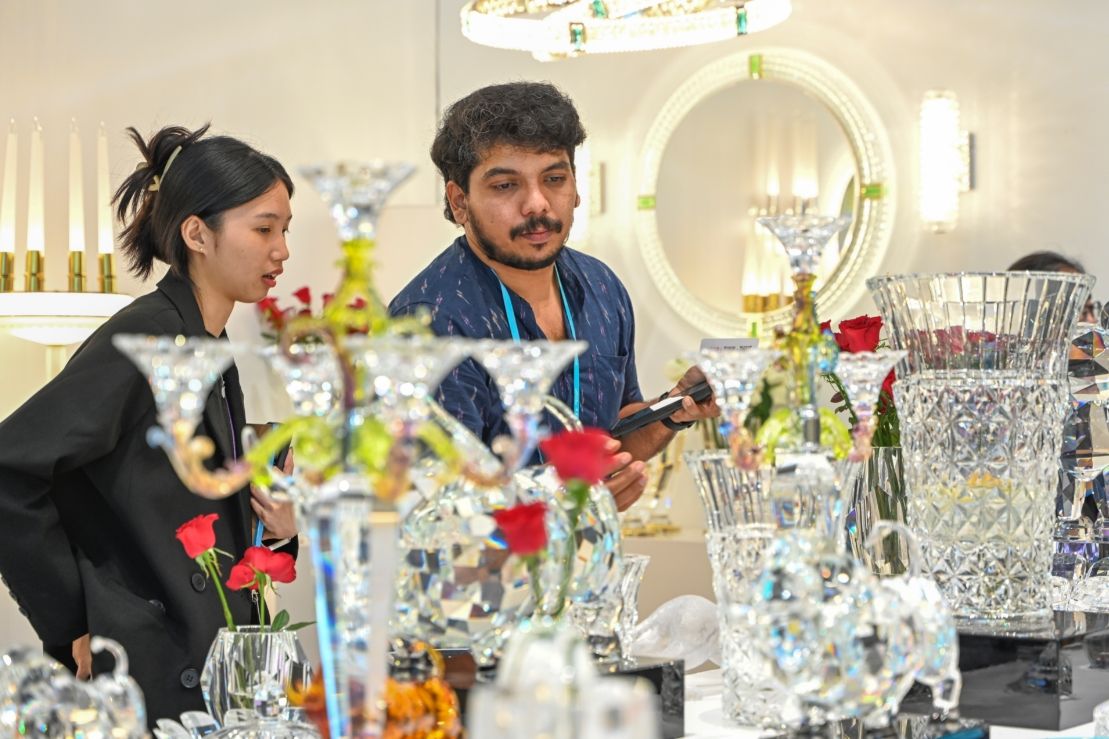 10月27日,采购商在广交会家居装饰品展区挑选产品。中新社