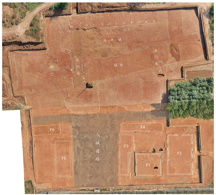 北京《新京报》报道,宫城位于小城北部正中,面积约50万平方米。通过对北墙、西北角、南墙及南门的发掘,判断宫城年代基本与小城共时。钻探发现宫城内遍布夯土,多条道路纵横交错,大致呈网格状布局。