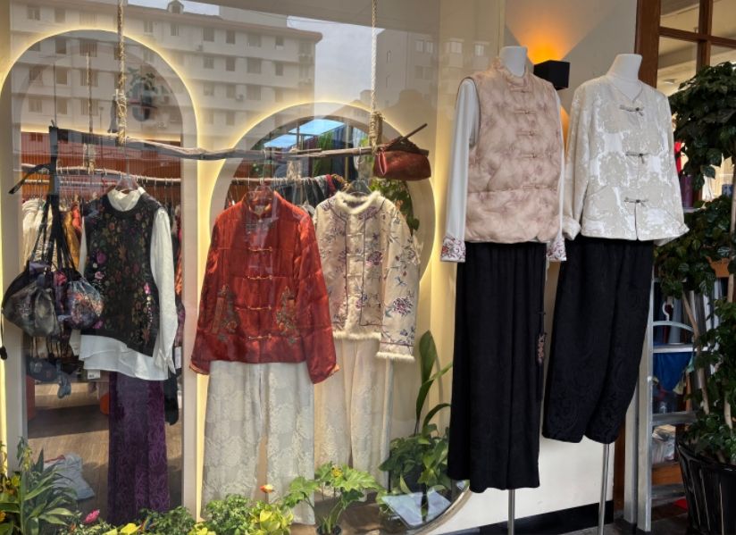 9日,浙江杭州一服装店铺展出多款“新中式”服装。中新社
