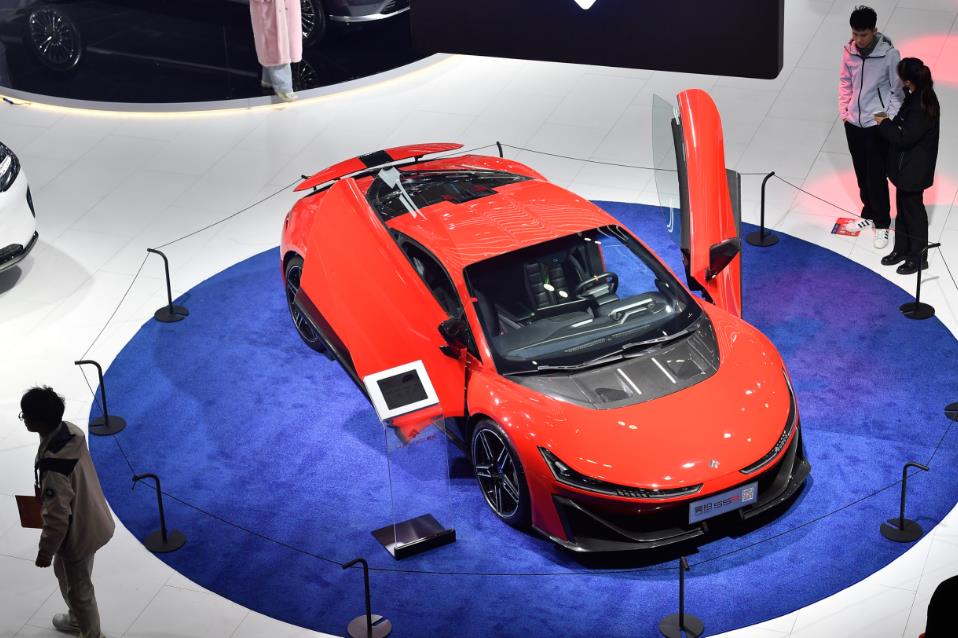 2024年12月4日,第二十届中国(长沙)国际汽车博览会在长沙启幕。图为新能源跑车吸引参观者驻足。中新社